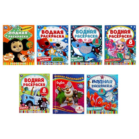 Раскраска водная "Для самых маленьких", АССОРТИ, 200х250 мм, 8 стр., лицензия, УМКА