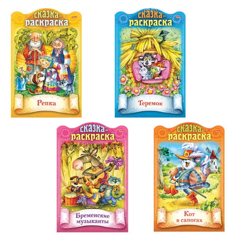 Раскраски детские "Сказки детям", КОМПЛЕКТ 4 шт., А4, 16 стр., HATBER