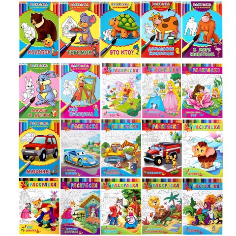 Раскраски "ДЛЯ ДЕВОЧЕК И МАЛЬЧИКОВ", КОМПЛЕКТ 20 шт., А4, 195х275 мм, 8 стр., ПП