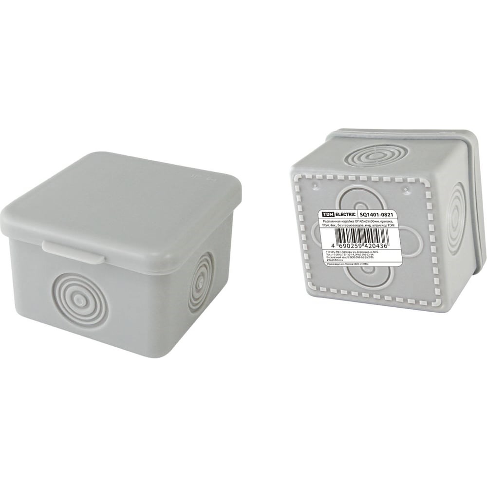 Распаячная коробка ОП 65х65х50мм от TDM ЕLECTRIC - это надежное и функциональное решение для защиты мест соединения проводов и кабелей от сырости и механических повреждений. Коробка предназначена для использования внутри и защиты коммутационных устройств, клеммных колодок, электронных приборов и плат, устройств индексации, счетчиков, табло и других устройств. Распаячная коробка может быть использована на открытом воздухе, а также в системе с трубами из ПВХ или металлорукавом. Ступенчатые гибкие сальники (гермовводы) для подсоединения гофрированных и гладких труб обеспечивают дополнительную герметизацию корпуса. Уплотнитель по периметру крышки обеспечивает степень защиты IP55 от проникновения пыли и влаги. Без уплотнителя коробки имеют степень защиты IP44. Крепление крышки осуществляется с помощью саморезов. Распаячная коробка изготовлена из пластика и имеет квадратную форму. Цвет товара - серый. Коробка поставляется в коробке из гофрокартона. Выбирая распаячную коробку ОП 65х65х50мм от TDM ЕLECTRIC, вы получаете надежное и качественное решение для защиты и организации ваших электрических соединений.