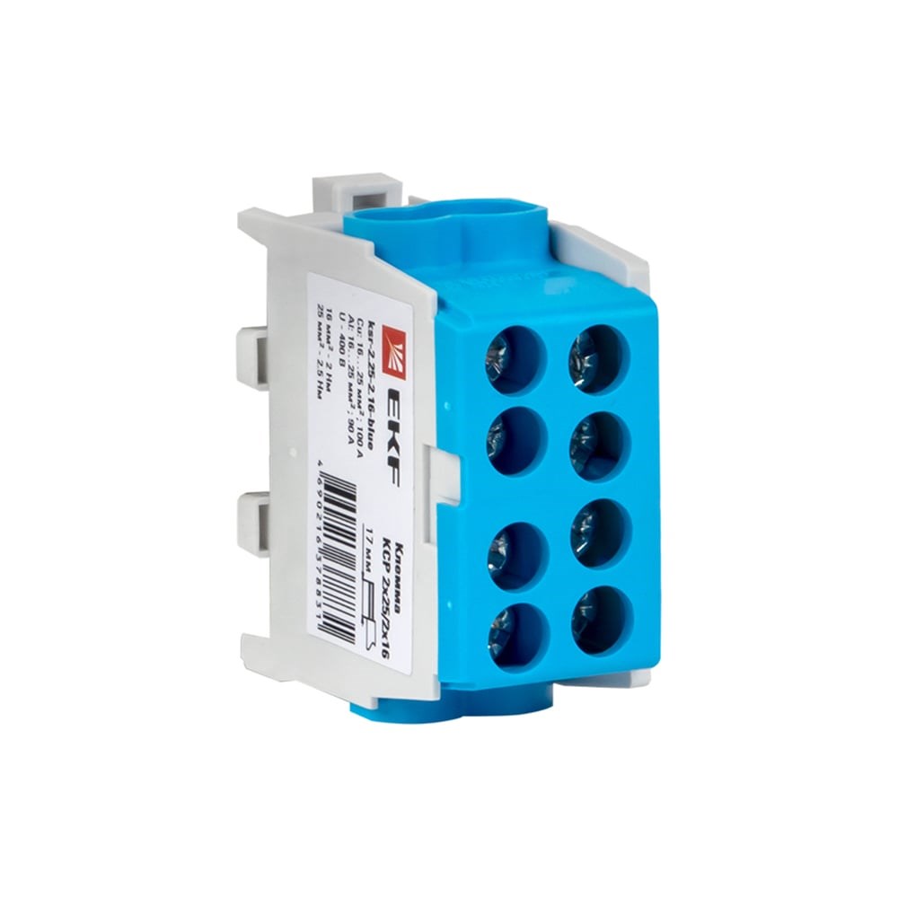 Клемма распределительная КСР с двойным винтом 2x25/2x16 серии PROxima предназначены для подключения и разветвления фазных, нулевых проводников и проводников заземления с сечением до 35 мм2. Благодаря данным клеммам можно закрепить проводник двумя винтами, что позволяет увеличить площадь контакта и обеспечить повышенную фиксацию. Две пары отверстий разного диаметра позволяют произвести переход на другое сечение.
