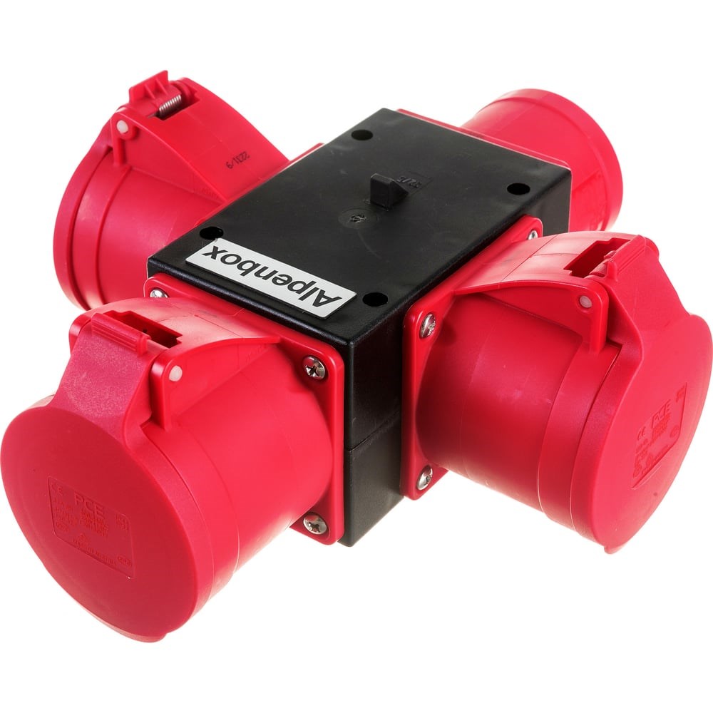 Распределительное устройство Alpenbox 0370001 имеет степень защиты IP44. Корпус прибора изготовлен полиамида. Устройство предназначено для разветвления трехфазной сети на нескольких трехфазных потребителей. Тип монтажа - переносной.