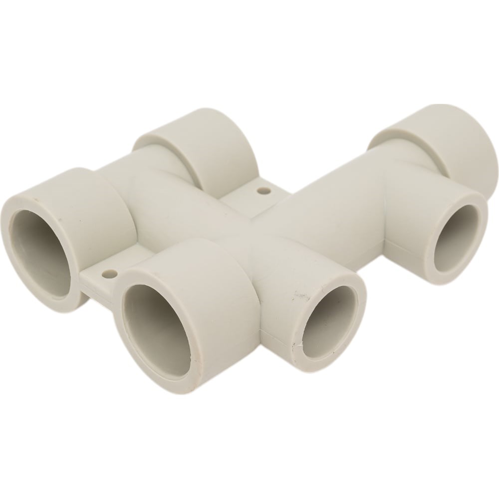 Распределительный блок TEBO technics предназначен для монтажа пересекающихся полипропиленовых трубопроводов в инженерных системах водоснабжения и отопления. Позволяет расположить все трубы в одной плоскости. Полипропиленовые трубы и фитинги TEBO technics применяются в системах хозяйственно-питьевого назначения, горячего водоснабжения, отопления, а также в качестве технологических трубопроводов, транспортирующих жидкости и газы, не агрессивные к материалам трубы и фитингов. Изготовлены из современного материала — Polypropylene Random Copolymer («Рандом сополимер» PP-R тип 3). Трубы и фитинги TEBO technics соответствуют нормам стандартов ГОСТ 32415-2013, DIN 8077/8078.
