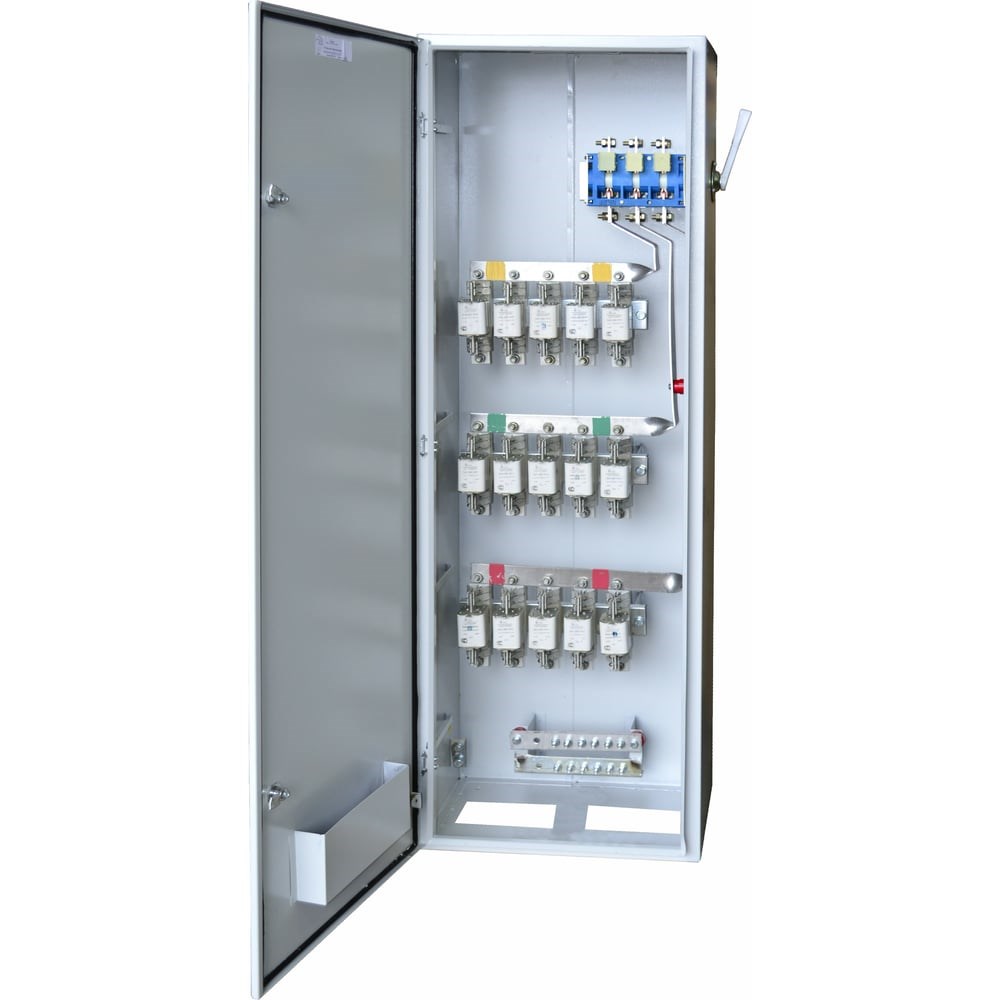 Распределительный силовой шкаф Узола ШРС 1-06-5-54-УЗ-001 (5х250) 400А IP54 U45042600 напольной конструкции предназначен для приема и распределения электрической энергии. Шкаф рассчитан на номинальный ток до 400А и номинальное напряжение до 380В трехфазного переменного тока частотой 50Гц. Количество предохранителей на отводящих линиях - 5хПН2 250А. Степень защиты IP54.