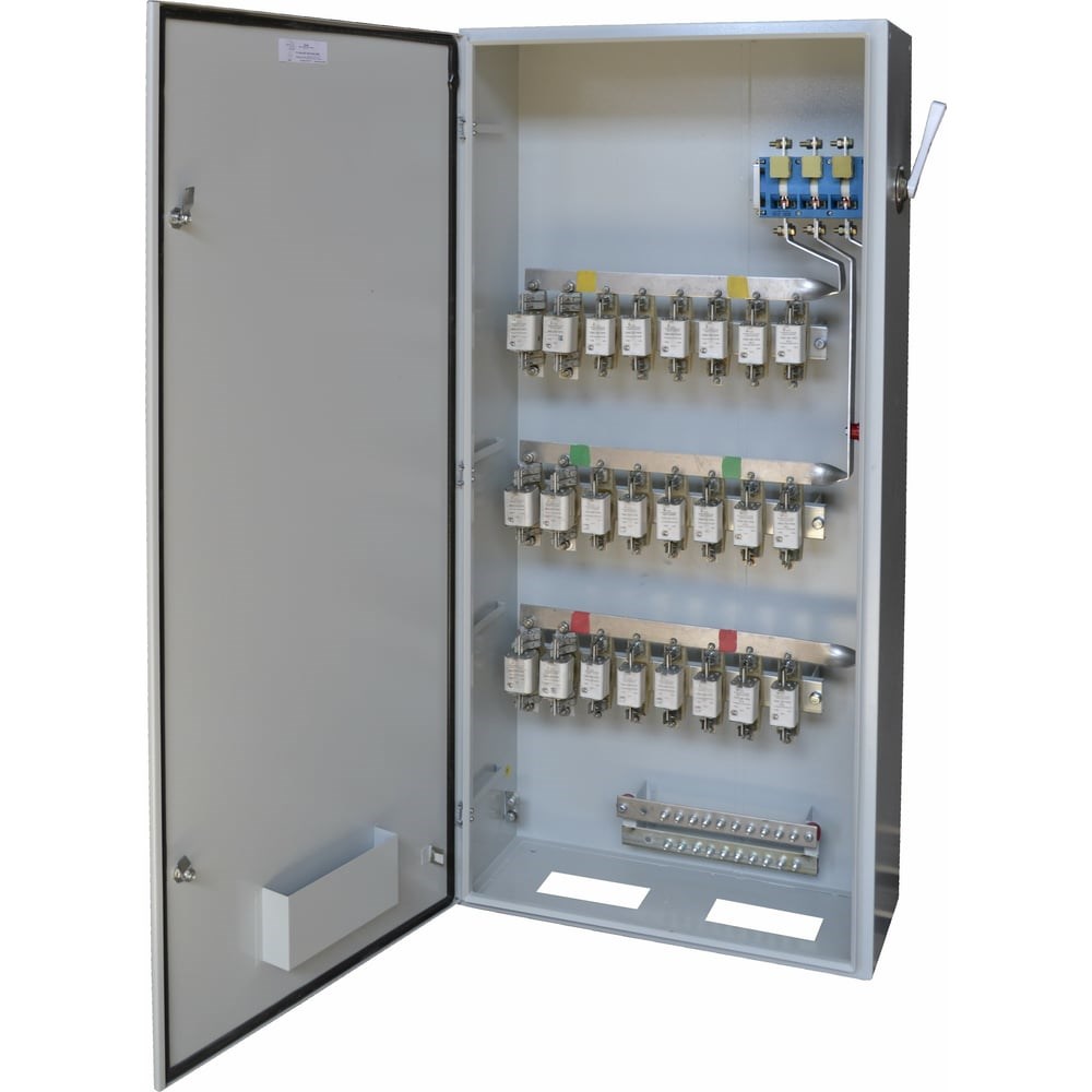 Распределительный силовой шкаф УЗОЛА ШРС 1-08-7-54-УЗ-001 (2x250А+4x100А+2x63А) 400А IP54 U45042800 напольной конструкции предназначен для приема и распределения электрической энергии. Шкаф рассчитан на номинальный ток до 400А и номинальное напряжение до 380В трехфазного переменного тока частотой 50Гц. Количество предохранителей на отводящих линиях - 2хПН2 250А + 4хПН2 100А + 2хПН2 63А.