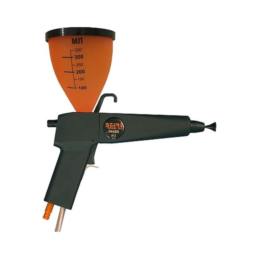 Распылитель с воронкой 400мл START 50 СТАРТ-60 4687202091386 предназначен для нанесения полимерных порошковых покрытий на изделия любой конфигурации из металла, стекла, керамики, и других термостойких материалов. Может использоваться на производствах с автоматическими линиями для подкрашивания изделий. Имеет переключатель напряжения 35/70 кВ. Это позволяет работать как в режиме максимального заряда порошка (до 70 кВ), так и в режиме заряда в 2 раза меньше максимального. Тумблер переключения установлен на блоке питания. Воронка изготовлена из нового полупрозрачного материала, для удобства операторов. На поверхность нанесена риска с отметками от 100 до 350 мл. Увеличенная воронка – это рост производительности и удобство в работе.