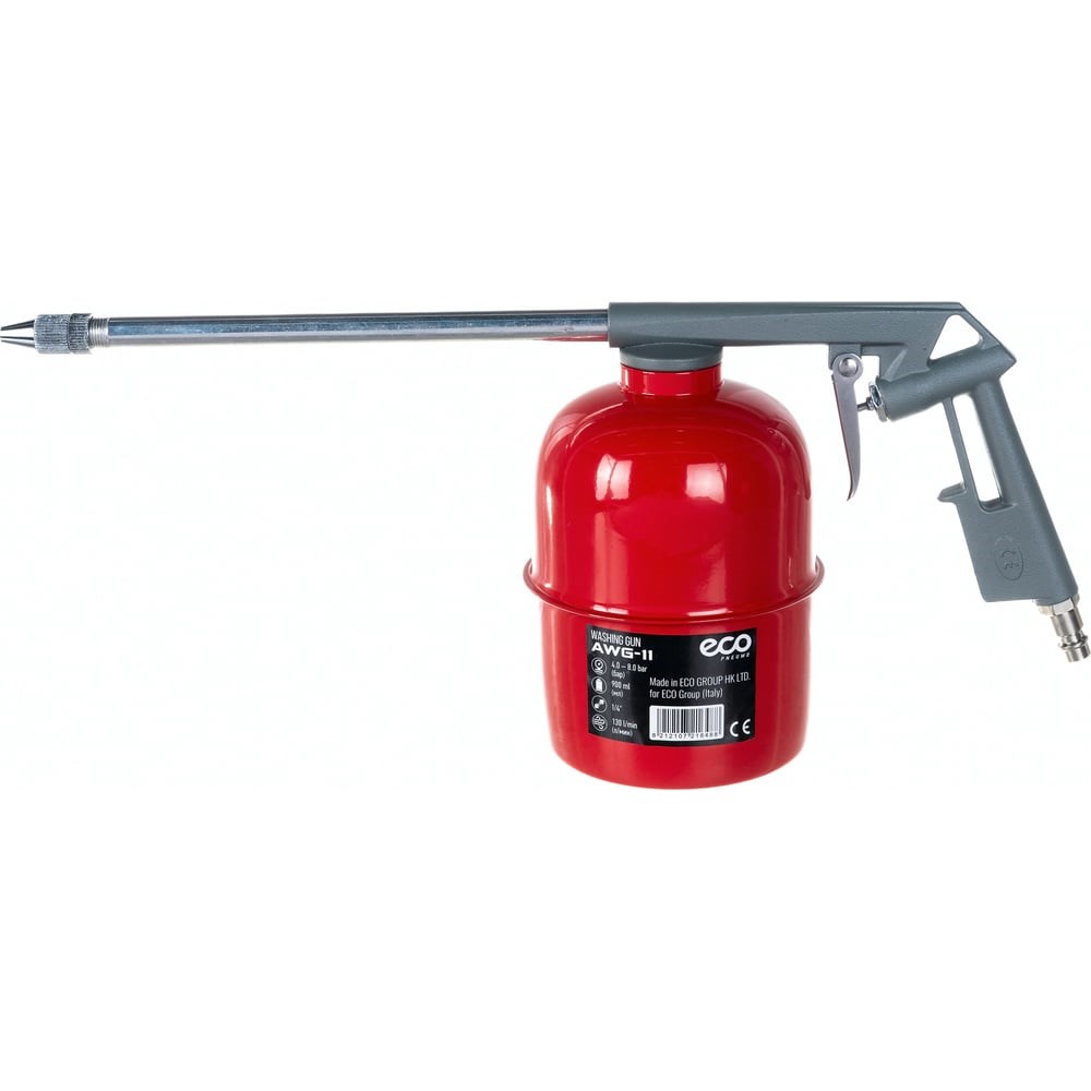 Распылительный пистолет ECO AWG-11 предназначен для мойки и смазки поверхностей, узлов или деталей потоком моющей жидкости и воздухом. Подключается к источнику сжатого воздуха (компрессору). Оснащен быстросъемным соединением для удобства использования. Предусмотрено медное сопло, устойчивое к коррозии.