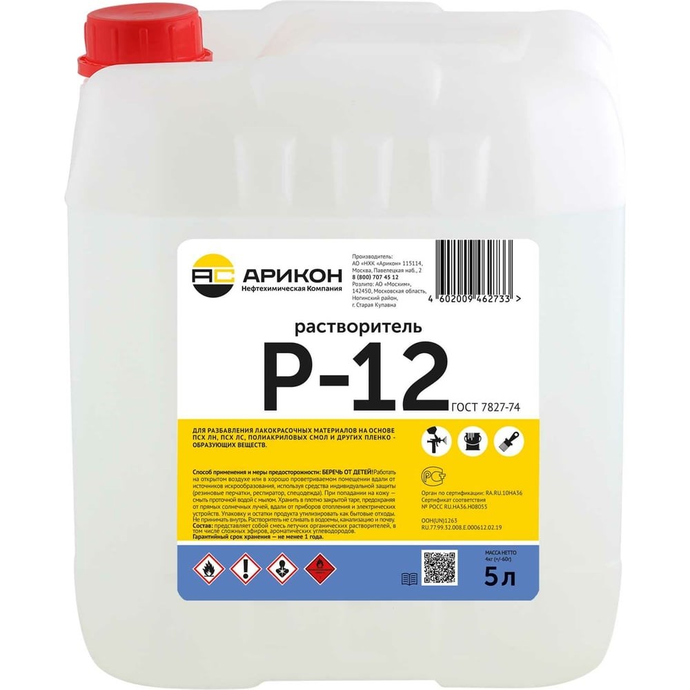 Растворитель Арикон Р-12 канистра 5л RAS125 предназначен для: разбавления лакокрасочных материалов на основе ПСХ ЛН и ПСХ ЛС (эмали: ХВ-533, ХВ-785, ХВ-1120, АК-194), полиакриловых смол и других пленкообразующих веществ. промывания и очистки лакокрасочных инструментов: кистей, валиков, емкостей. промывания лакокрасочного технического оборудования: краскопульта, сопла, емкости для краски и пр. Применяется в автомобильной промышленности и быту.