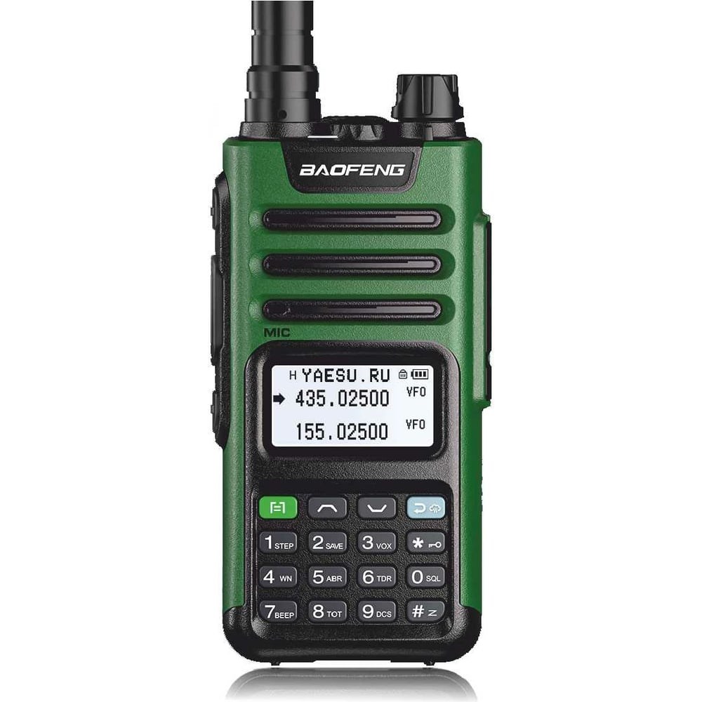 Рация Baofeng UV-13 PRO черно-зеленая 00029152 выполнена в современном дизайне, обладает небольшой массой. Имеет поддержку зарядки через Type-C разъем. Аккумулятор емкостью 4800 mAh. Заряда хватит на 48 часов. Мощность передатчика 5 Вт. Уверенная радиосвязь на расстоянии до 10 км при прямой видимости и до 2 км в условиях городской среды. Усилена защита от пыли и дополнительно укреплен корпус устройства. Модель может порадовать возможностью программирования с помощью ПК, клипсой с возможностью быстрого съема, наличием встроенного светодиодного фонарика, а также гарнитурой в комплекте.