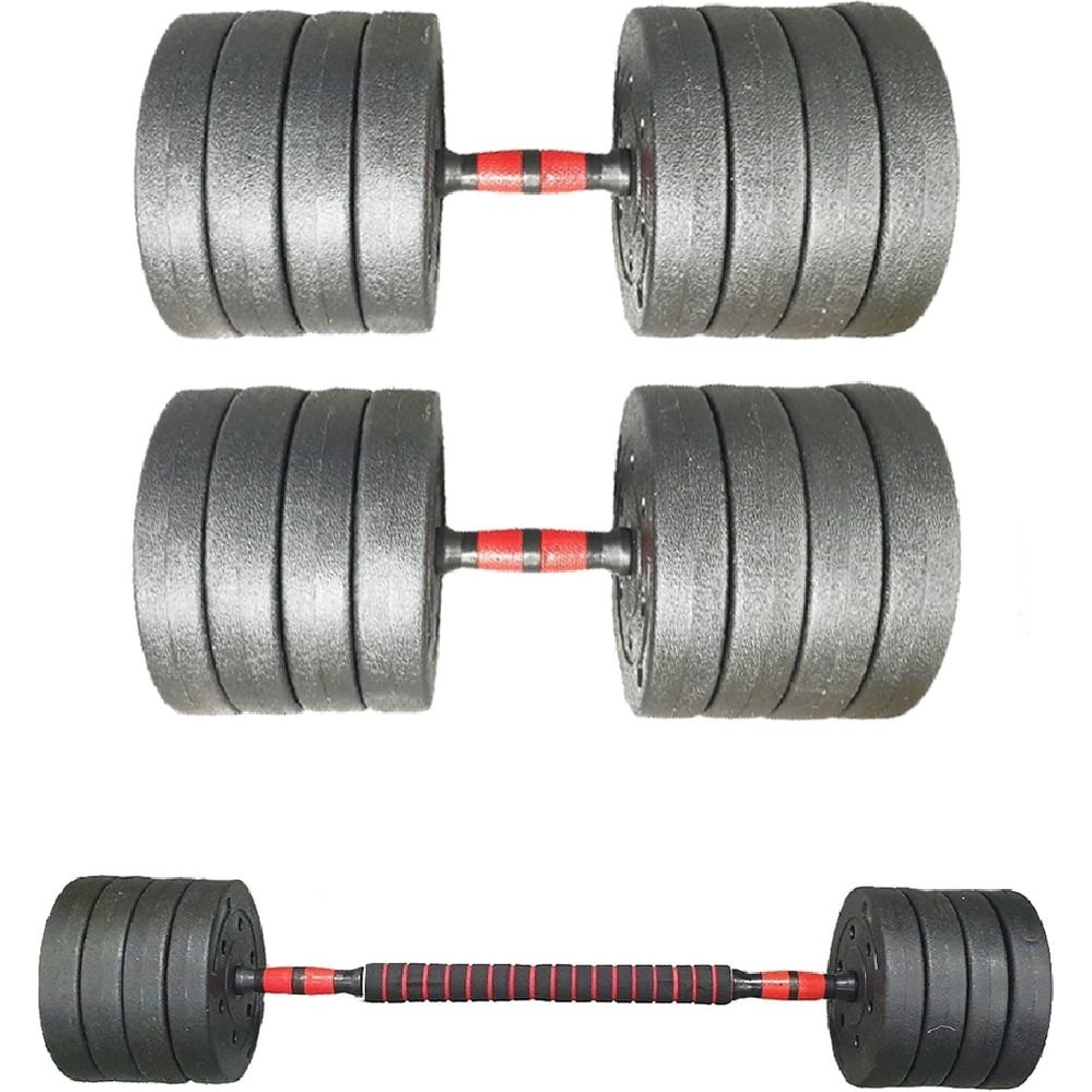 Разборные гантели с грифом URM 2шт, 25 кг, 50 кг B00129 – универсальный вариант для домашних тренировок. Разборная конструкция позволяет уменьшать и увеличивать нагрузку по мере необходимости. С помощью специального грифа гантели можно разобрать и соединить между собой или в штангу. Гайка с фиксатором, исключают разбалтывание дисков во время тренировки. Нагрузку, входящую в комплект, можно произвольно настраивать. Блины изготовлены из прочного пластика, поэтому при падении они не повредят пол. Дополнительные характеристики Длина грифа 40 см Общая длина штанги составляет 114 см Длина места хвата грифа- 13см Длина посадочного места - 19 см