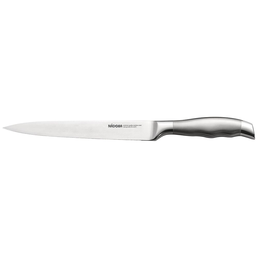 Разделочный нож 20 см NADOBA серия MARTA 722811 выполнен из нержавеющей стали. Инструмент подходит для бытовой эксплуатации. Рукоятка имеет удобную форму. Длина клинка - 200 мм.