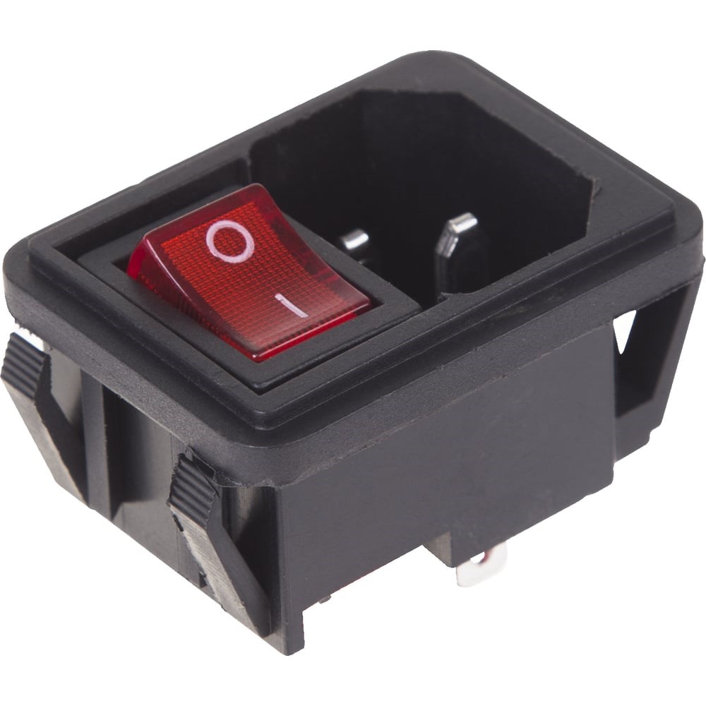 Разъем питания REXANT C14 3PIN с клавишным выключателем с красной подсветкой 250V 10А 10 шт 36-2270 предназначен для коммутации электрических цепей переменного тока напряжением до 250В. Комбинация выключателя с разъемом питания применяется в качестве комплектующих изделий различного электрооборудования (на блоках питания). Клавишный переключатель имеет два положения. Принцип действия основан на перемещении клавиши в одну из позиций. Для переключения в нужное положение требуется приложить некоторые усилия на клавишу. Монтаж осуществляется без применения винтов на плоских панелях толщиной от 0.8мм до 3мм. Подключение контактов осуществляется плоской клеммой, либо с помощью пайки. Основные характеристики: Предельное напряжение: 1500VАС не более 1 минуты. Контактное сопротивление: не более 35 мОм. Тип переключения: ON-OFF. Количество контактных групп: 2. Количество контактов в контактной группе: 2. Фиксация положений: да. Индикатор коммутационных положений: красный. Тип разъема питания: тип C14. Рабочая температура -25...+85 ℃. Ресурс 10 000 циклов.