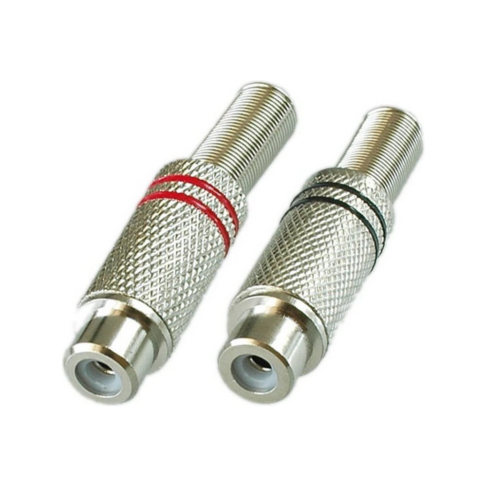 Разъем RCA гнездо Pro Legend металл на кабель, пайка, красный и черный 2 полосы, PL2158 - стандартизированный разъем, передающий монофонический аудиосигнал или видеосигнал через кабель на видео, теле и аудиотехнику имеющую соответствующий разъем.