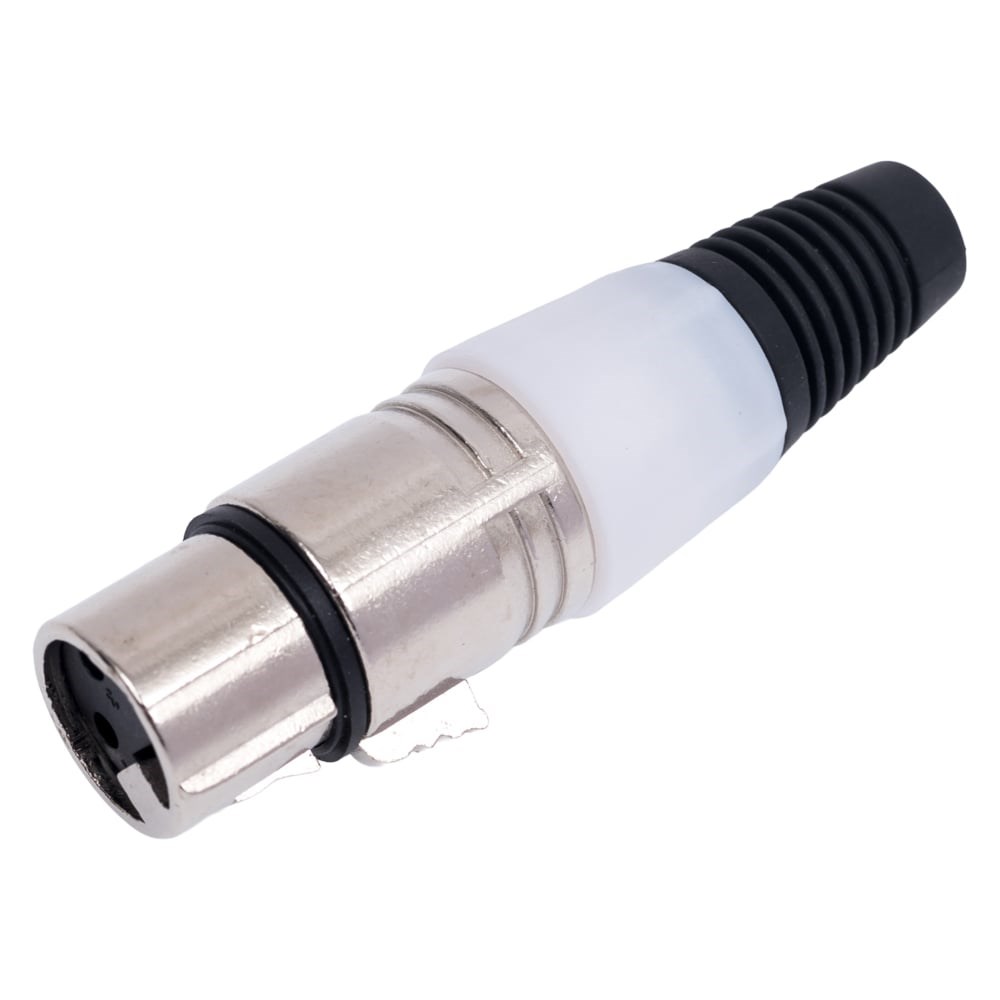 Разъем XLR 3P гнездо Pro Legend металл цанга на кабель, белый, PL2183 применяется в профессиональной аудио, видео и световой аппаратуре для симметричной передачи аналоговых сигналов микрофонного или линейного уровня, цифровых сигналов, а также синхросигнала. Разъемы имеют балансное подключение и отличаются высокой надежностью. Они защищены от неправильного подключения посредством замка, который защелкивается при соединении обеих частей разъема. Также, разъемы имеют толстые и прочные контактные штырьки.