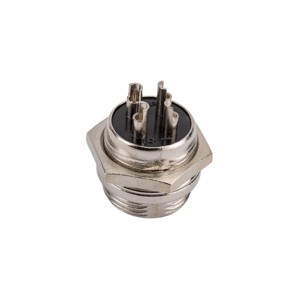 Разъем MIC16 4P штекер Pro Legend металл на корпус, PL2208 малогабаритный - коннектор ручного соединения цилиндрический, внутреннего объемного монтажа, соединяет цепи с нагрузкой до 15 А и 200 В.