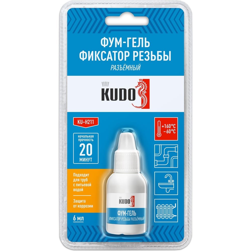 Фум-гель KUDO фиксатор резьбы разъемный KU-H211 представляет собой однокомпонентный анаэробный состав, который предназначен для надежной фиксации и герметизации резьбовых соединений. Продукт незаменим при монтаже систем отопления и водоснабжения. Рекомендуется для труб диаметром от 1/2" до 2". При необходимости, возможен разбор резьбового соединения ручным инструментом. Свойства продукта: Заменяет фум-ленту Предотвращает самоотвинчивание Устойчив к нагрузкам Устойчив к воздействию антифриза, бензина Защищает резьбу от коррозии Использование в широком температурном диапазоне Возможно применение для труб с питьевой водой