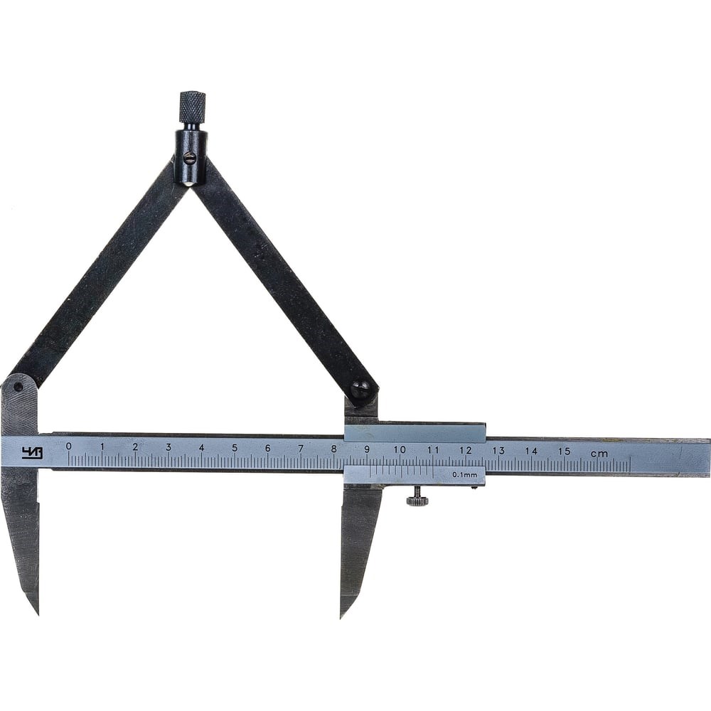 Штангенциркуль ШЦР предназначен для наружных измерений, а также для разметочных работ. Основная особенность этого типа штангенциркулей – остро заточенные губки, которыми наносятся разметочные риски. Результаты измерений снимаются по шкале со штанги, которая показывает целые миллиметры и с нониуса, показывающего их доли. Материал изготовления - инструментальная сталь.