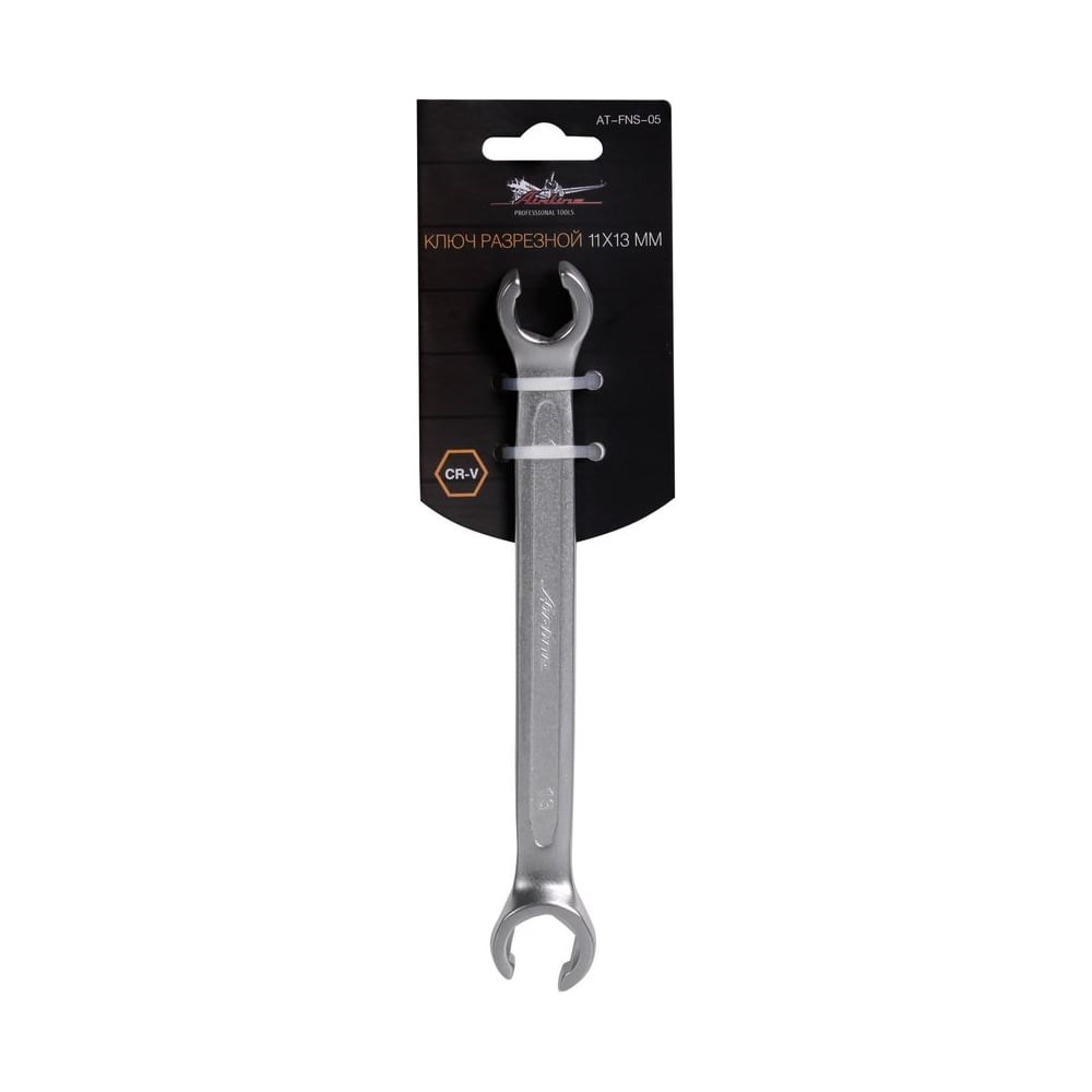 Разрезной ключ 11х13мм Airline AT-FNS-05 оснащен двумя головками. Инструмент выполнен из хромованадиевой стали методом горячей ковки. Профиль позволяет охватить большую площадь поверхности крепежа, что делает эксплуатацию более безопасной для граней. Твердость металла: 45-47 HRC.