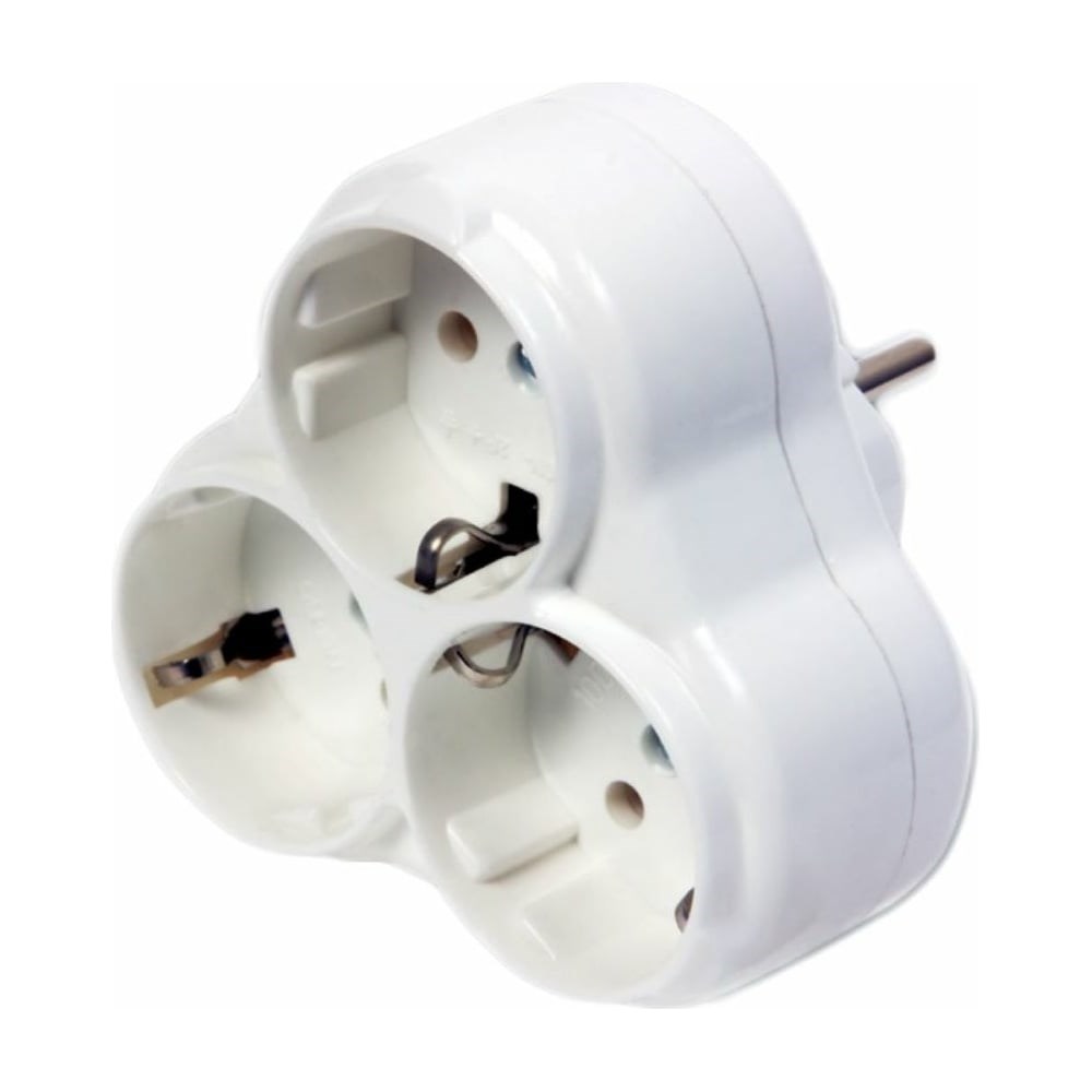 Разветвитель NE-AD 3-гнезда с заземлением, треугольник, 16А, 250В, Белый, 1003 имеет три универсальных розеточных гнезда для подключения любых бытовых электрических приборов. Сетевой разветвитель (тройник) предназначен для бытового применения в помещениях и обеспечивает возможность присоединения электрических приемников к электросети. Позволяет подключить несколько потребителей к одной электрической розетке.