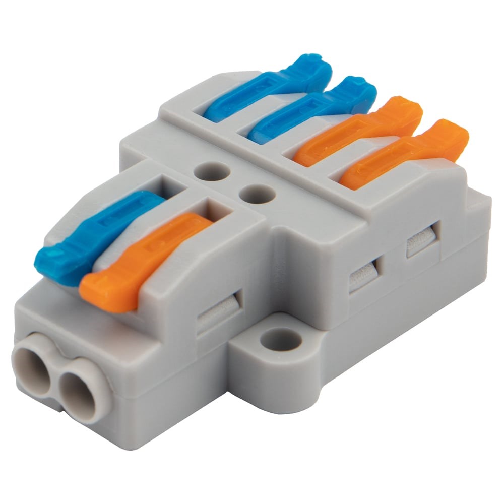 Предназначена для соединения медных одножильных и многожильных зачищенных проводников тонкого сечения. Контакт осуществляется путем зажима проводника пластиной. Конструкция предотвращает случайное размыкание контакта. Специальное технологическое отверстие на корпусе клеммы предназначено для проверки соединения тестером-пробником или щупом мультиметра.