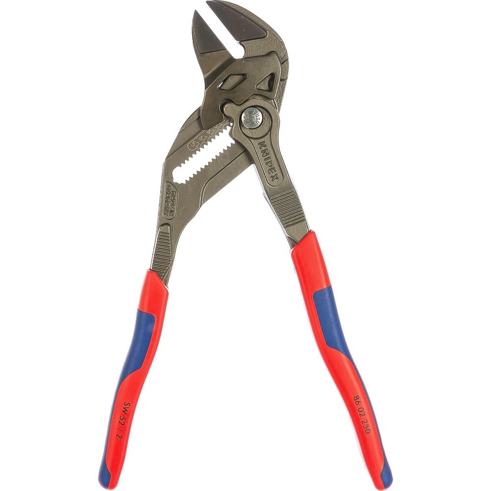 Переставные клещи KNIPEX 52 м, 250 мм, серые, 2К ручки KN-8602250 изготовлены из кованой хромоваданиевой стали, закаленной в масле. Прочные губки и рифленые рукоятки передают максимальное усилие при сжатии. Чехлы препятствуют скольжению, что повышает качество работы с инструментом.