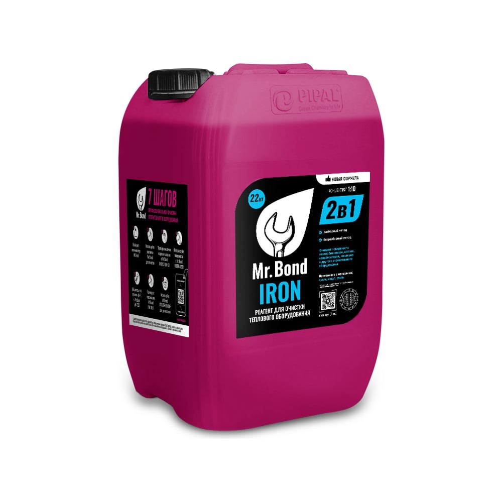 Реагент для промывки теплообменников Mr.Bond IRON MB2021010020 предназначен для очистки внутренней поверхности инженерных систем от ржавчины, накипи, шлама, известкового налета и прочих вредных отложений. Подходит для оборудования из стали, меди и чугуна. Оказывает низкое воздействие кислот на металлы, поэтому не повреждает их. Очищает котлы от вредных отложений, благодаря чему продлевает срок их службы. 2в1 - За счет улучшенной рецептуры, теперь Mr.Bond IRON (ранее SteelTEX IRON) подходит как для разборного метода очистки, так и для безразборного! *На медных пластичных теплообменниках применение не рекомендуется.