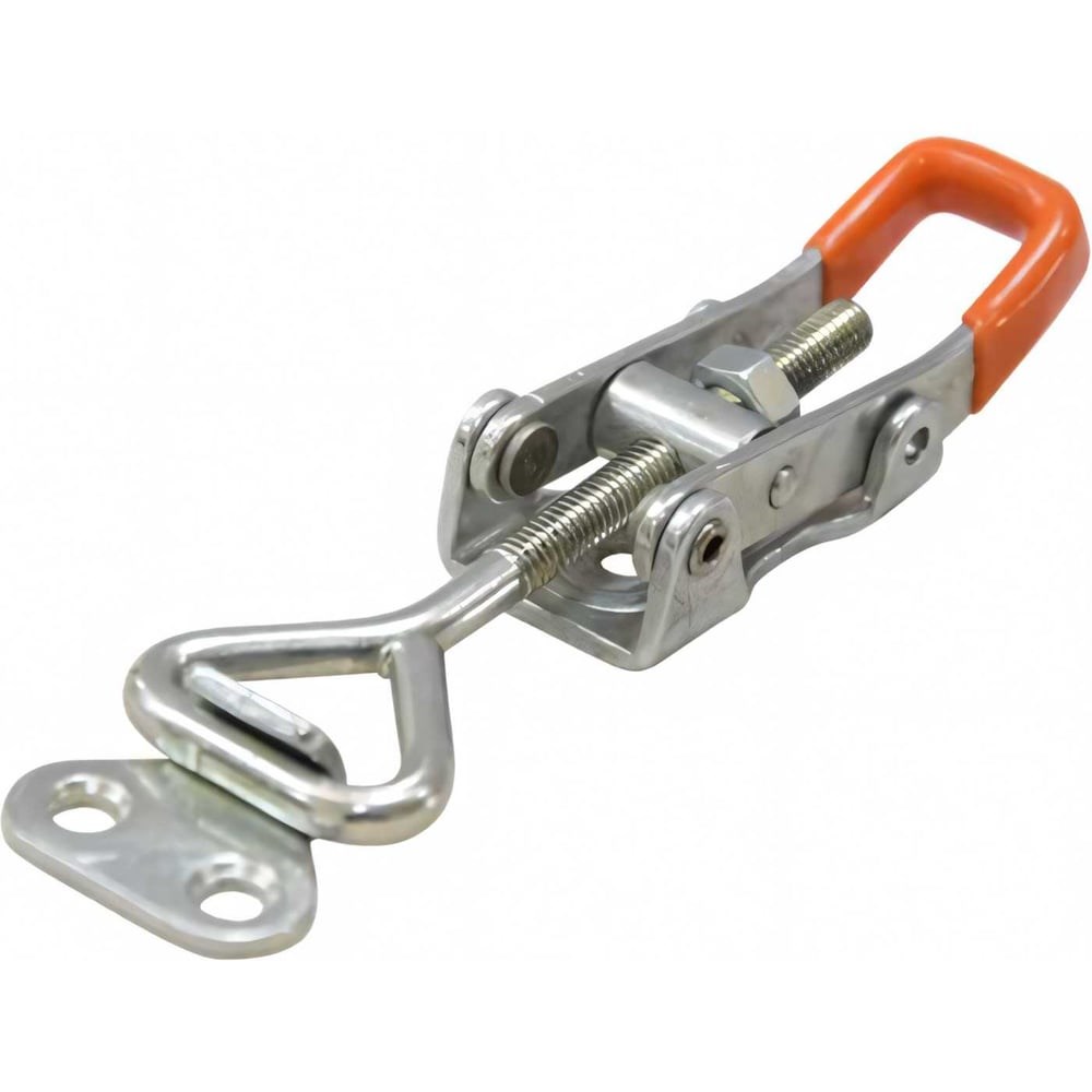Натяжная регулируемая защелка со скобой Kukamet 361-2-K служит надежной системой запирания и применяется в промышленности. За счет прохождения мертвой точки они становятся устойчивы к вибрации. Отличается стабильным исполнением и низкой монтажной высотой. Материал: Основа из стали. Исполнение: Сталь оцинкованная. Рукоятка полимерная маслостойкая. Длина резьбы: 50 мм. F1 зажимное усилие: 1500 Н. F3 крепежная сила: 1725 Н. С min.: 25 мм. С max.: 60 мм. L min.: 110 мм. L max.: 145 мм