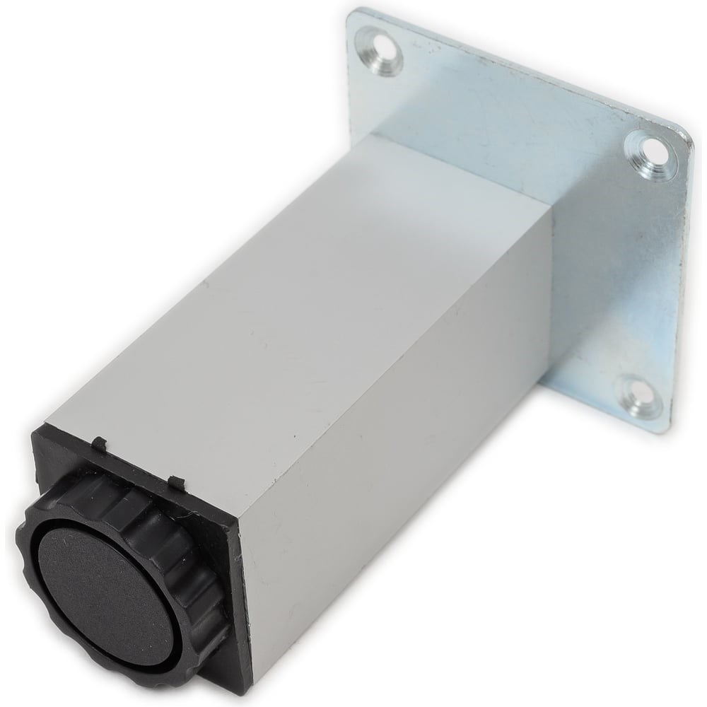 Область применения: используется как опора неподвижной мебели. Применяется при сборке стеллажей, шкафов, тумб, подставок.Позволяет отрегулировать высоту конструкции и расположить ее на неровной поверхности.Материал:алюминий, пластик. Особенности:фурнитура не только придает изделию стильный вид, но также обеспечивает высокую устойчивость конструкции. В верхней части расположены четыре отверстия для крепления ножки при помощи шурупов.