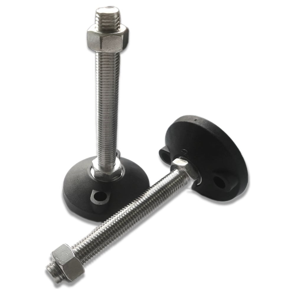 Регулируемые винтовые опоры представляют собой надежное решение для установки и точной настройки положения легкого механического оборудования, в частности, используемого на сборочных линиях. Эти опоры обеспечивают превосходную стабилизацию оборудования благодаря возможности вертикальной регулировки подъема, что позволяет достигать высокой точности установки и компенсировать неровности поверхностей.Основные характеристики:Диаметр основания: 100 мм.Материал основания: Изготовлено из высокопрочного нейлона PA66, который отличается долговечностью и стойкостью к различным воздействиям, таким как химические реагенты или механическое изнашивание.Регулировочный винт: Выполнен из углеродистой стали с никелированным покрытием, что гарантирует коррозийную стойкость и длительный срок службы. В комплекте поставляется с регулировочной гайкой для удобства настройки.Резьба: М20, 150 мм.Максимальная статическая нагрузка: 700 кг.Эти регулируемые винтовые опоры являются эффективным решением для предприятий, стремящихся к повышению эффективности производства за счет точной настройки оборудования. Использование данных опор помогает минимизировать вибрацию и предотвращает передачу шума на другие конструкции, тем самым создавая более комфортные условия работы.