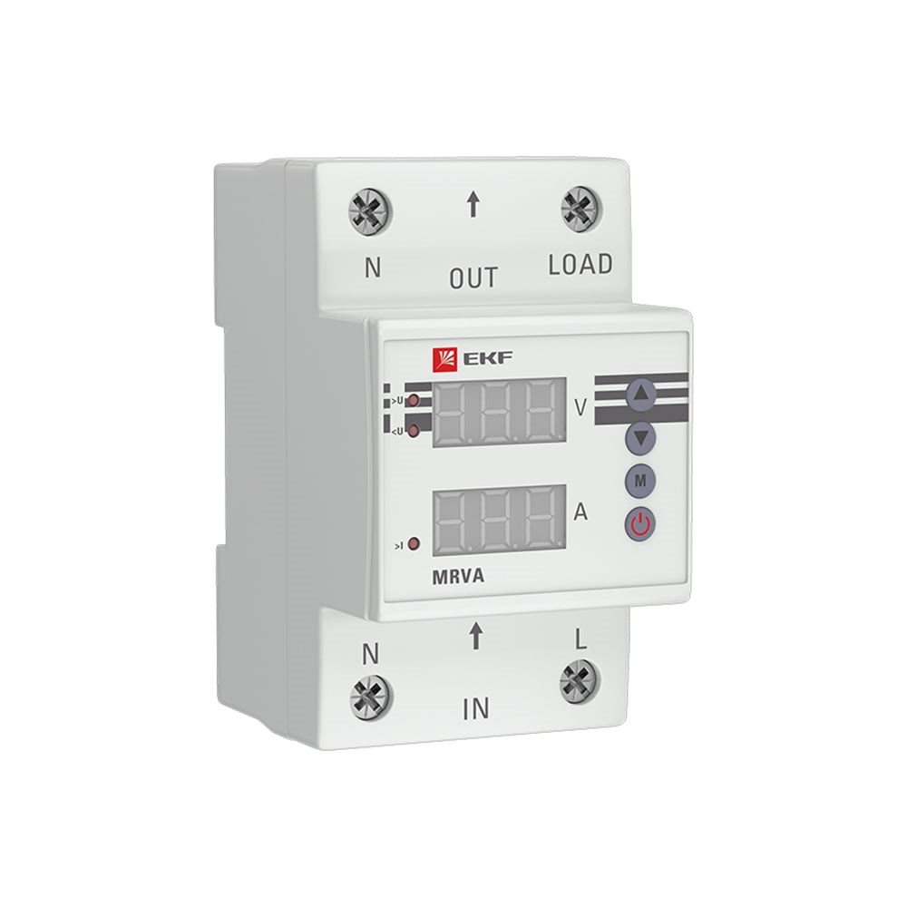 Реле напряжения и тока EKF PROxima MRVA, с дисплеем, 40A, 40A PROxima MRVA-40A является микропроцессорным устройством контроля напряжения и тока в однофазных сетях переменного тока. Прибор анализирует напряжение и ток в электросети и отображает их действующие значения на цифровом индикаторе. ПРИНЦИП РАБОТЫ Коммутация нагрузки осуществляется электромагнитным реле. Допустимые пределы отключения и время задержки включения устанавливаются пользователем с помощью кнопок. Значения сохраняются в энергонезависимой памяти. Возможна коммутация алюминиевым и медным проводом. Дополнительные характеристики: Номинальная частота, Гц 50. Диапазон регулировки максимального напряжения, В 230~300. Диапазон регулировки минимальногонапряжения, В 120~210. Диапазон регулировки максимального тока, Is, А От 16 до In. Погрешность 2%. Время отключения по верхнему пределу напряжения, сек. <285В: 0,1с, ≥285В: 0,02с. Время отключения по нижнему пределу напряжения, сек. 0,5 сек. (≥120В); <0,1 сек. (<120В) Погрешность вольтметра ≤1%. Номинальное напряжение изоляции, 400 В. Степень загрязнения 3. Коммутационная износостойкость, циклов 100 000. Механическая износостойкость, циклов 1 000 000. Высота над уровнем моря, м ≤ 2000. Рабочая температура, °C От -5 до +40. Диапазон регулировки времени задержки включения, сек. 5-600.