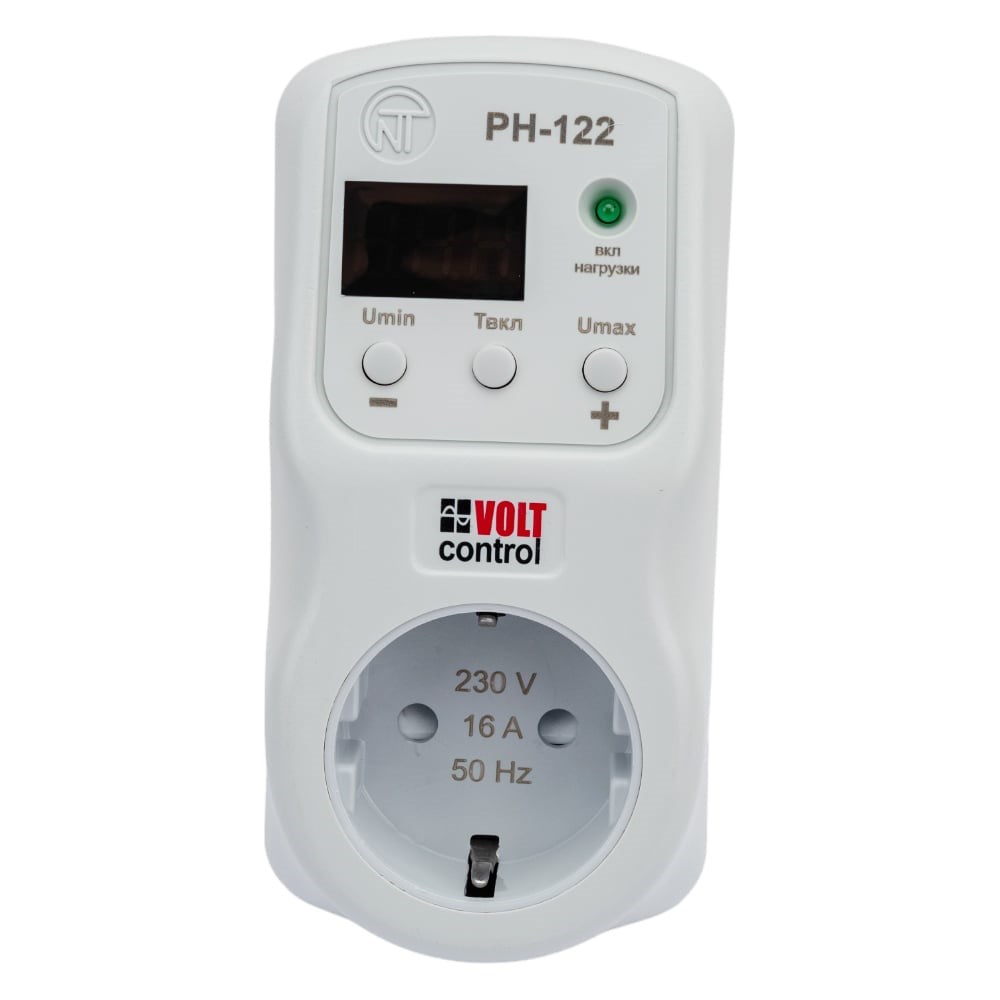 Реле напряжения РН-122 предназначено для защиты бытовой техники мощностью до 3,6 кВт (в том числе холодильников, кондиционеров, стиральных машин, компьютеров, теле-аудио техники и т.п.) от недопустимых колебаний напряжения в сети и последствий обрыва нейтрали.Обеспечивает отключение защищаемого оборудования, если значение напряжения сети выходит за пределы, заданные ПользователемОбеспечивает автоматическое повторное включение (АПВ) после восстановления параметров сети;Индицирует значение напряжения сети и наличие напряжения в розетке.Имеет функцию защиты от перегрева (само термоконтроль встроенным термодатчиком)Диапазон регулирования времени автоматического повторного включения, с - 5-900.