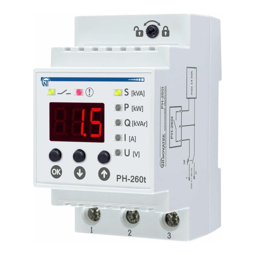 Дополнительные технические характеристики: Индицирует действующее значение напряжения в сети и состояние выходных контактов (состояние нагрузки). Измеряет и выводит на дисплей потребляемый нагрузкой ток, активную и реактивную мощность и отключает нагрузку при превышении заданных порогов по току и мощности. Реле может использоваться как реле напряжения, реле ограничения потребляемой мощности, цифровой мультиметр (индикация напряжения сети, полной, активной, реактивной мощности и потребляемого тока).