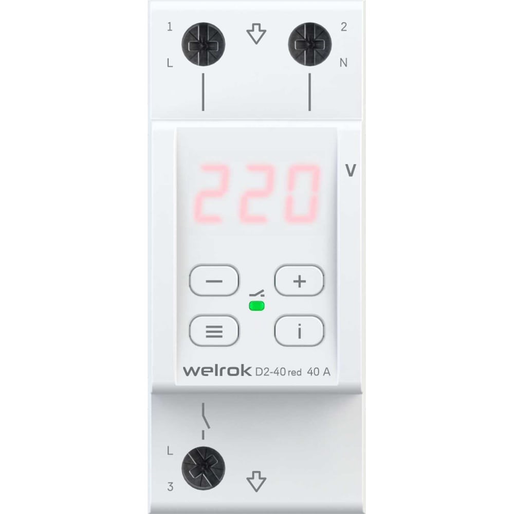 Реле напряжения Welrok d2-40 red 4660251140083 защищает оборудование от скачков и провалов напряжения, обрыва нулевого провода. Реле отключает нагрузку, если сетевое напряжение выходит за установленные пределы. Когда значение напряжения вернется в норму, нагрузка будет автоматически включена обратно. Подключение можно сделать с транзитом или без транзита нуля через Welrok D2 red. При этом вход нуля может быть как вверху так и внизу реле. Welrok D2 red - компактное реле на 2 модуля с мощным функционалом: Для уменьшения количества срабатываний: Скорость срабатывания реле < 0,03 сек. TrueRMS для точного измерения напряжения. Защита от частых срабатываний. Регулируемый гистерезис. Регулируемая задержка включения нагрузки. Профессиональная модель отключения при выходе напряжения за пределы. Для анализа питающей сети по характеру аварийных срабатываний: Журнал срабатываний на 100 значений. Для комфортной и безопасной эксплуатации: Поправка напряжения на экране. Регулировка яркости экрана. Защита от перегрева. Корпус реле напряжения изготовлен из пластика, не поддерживающего горение.