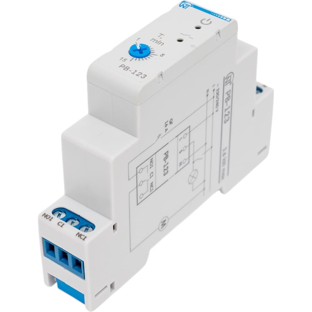 Реле времени РВ-123 предназначено для отключения нагрузки (например вентилятора) после размыкания контактов выключателя в течение установленного пользователем времени. Пример: организация вентиляции санузлов, ванных комнат. Алгоритм работы: Выключателем включаем освещение. Вентилятор включится. Выключателем выключаем освещение. Нагрузка (вентилятор) отключится через установленный промежуток времени. Выдержка времени от 1 до 15 мин.