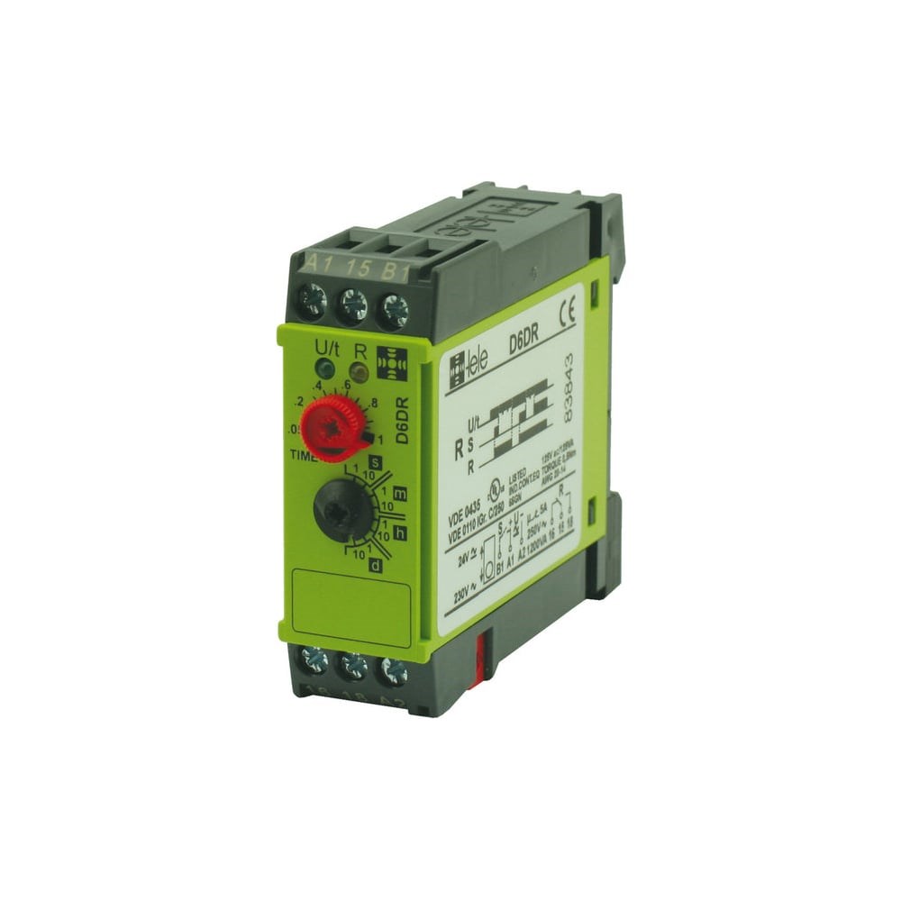 Реле времени TELE D6DR 24VAC/DC 230VAC (234060) имеет одну функцию: R - задержка выключения c контактом управления, питание реле может осуществляться от 24V AC/DC или от 230V AC, реле времени имеет один перекидной контакт на выходе (1CO). Реле времени выполнено в промышленном форм-факторе и имеет ширину 22,5мм.Поскольку на выходе один перекидной контакт, реле можно использовать как для включения нагрузки через установленный промежуток времени, так и для выключения нагрузки.