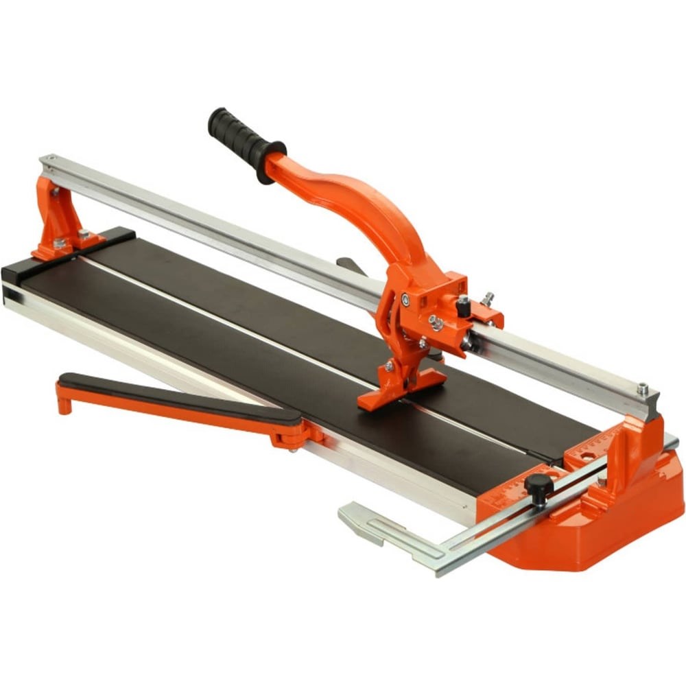 Рельсовый плиткорез используется для резки керамической кафельной плитки толщиной до 16 мм и длиной до 600 мм. Специальный двухуровневый угольник поможет точно отрезать плитку под необходимым углом. Боковая поддержка плитки обеспечивает комфортную работу даже с плиткой большой ширины. Плиткорез имеет направляющую - двутавровую рейку из специального стального сплава. Несущая каретка инструмента охватывает рельс с двух сторон и передвигается посредством подшипникового механизма, что обеспечивает плавность хода каретки. Прижимной обхват каретки к рельсу регулируется специальным болтами, в результате достигается полное отсутствие люфта между кареткой и рельсом и максимальная устойчивость рукоятки при резке. Специальный сплав и покрытие рейки обеспечивает надежное сцепление шарикового механизма с рельсом и исключает проскальзывания каретки при работе.