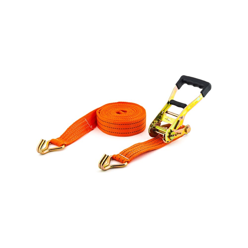 Высококачественный стяжной ремень для крепления груза «Топ Авто» оборудован стальной пряжкой с каленым храповым механизмом 230 мм, что позволяет надежно зафиксировать груз относительно поверхности, на которой он размещен для перевозки. Материал изготовления ремня – сертифицированная полиэфирная лента шириной 55 мм, прочная и долговечная. Максимальная стяжная нагрузка данного ремня для крепления груза – 5 тн, максимальное усилие удержания – 10 тн. Ремень пригоден к использованию при температурах от -15 до +80. Устойчив к истиранию, не выгорает на солнце.