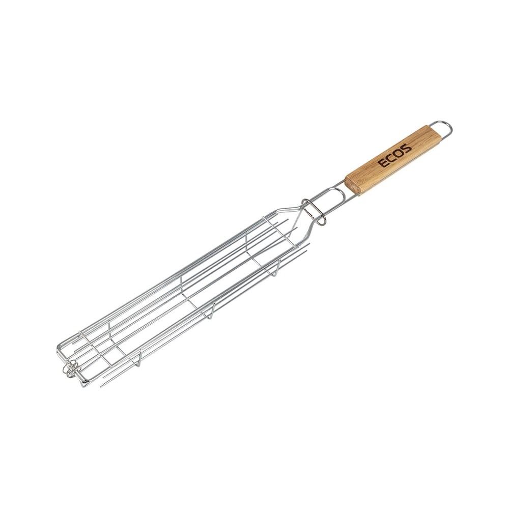 Решетка для барбекю Ecos 9710D хромированная, 49x4х3.5 см 999710 поможет легко приготовить вкуснейшие блюда на открытом огне. Удобная деревянная ручка не нагревается при использовании и не скользит в руках. Благодаря тому, что решетка переворачивает все содержимое одним движением, значительно экономится время при готовке. Удобный зажим прочно закрепит продукты на решетке, будь то мясо, овощи или рыба. Толщина прутьев: 2.8 мм, 1.8 мм.