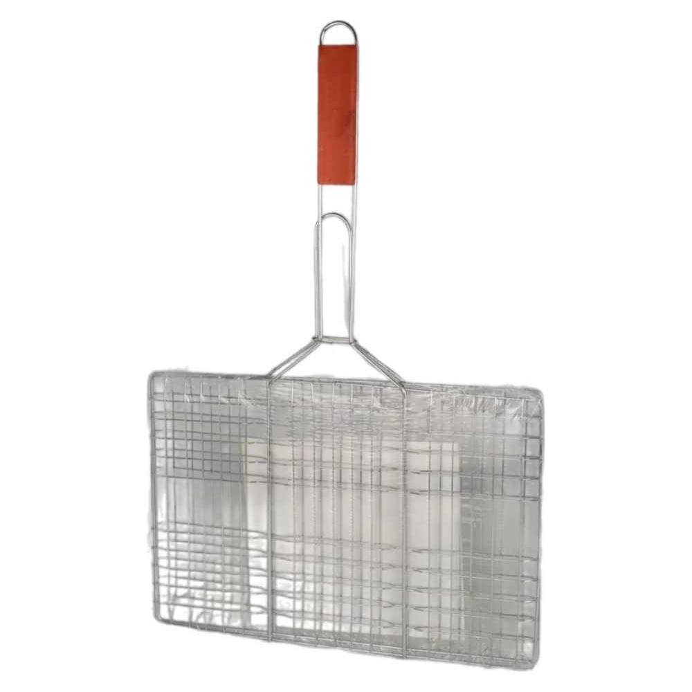 Решетка-гриль подходит не только для мяса, но и для рыбы, сосисок, овощей. Идеально подходит для мангалов и барбекю. Решетка-гриль изготовлена из высококачественной стали с пищевым хромированным покрытием. Имеет фиксирующее кольцо на ручке, что обеспечивает надежную фиксацию. Деревянная ручка не нагревается при использовании, а также удобна для обхвата двумя руками, что позволяет легко переворачивать решетку. Толщина: 25 мм Толщина прутьев: 3 мм