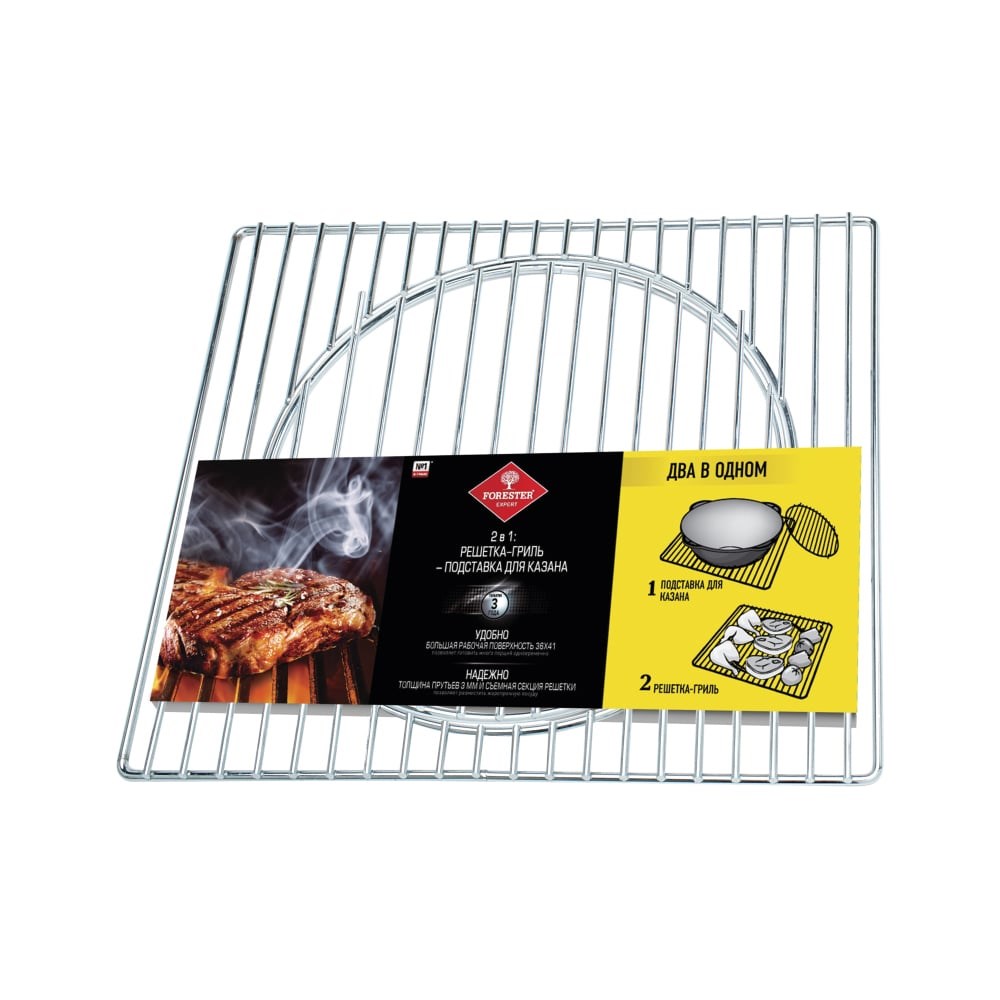 Решётка-гриль и подставка для казана FORESTER 2 в 1 BQ-N20 используется для приготовления пищи (мяса, рыбы, птицы) на углях. Ее можно использовать в качестве подставки для сковороды, казана и саджа. Решетка сделана из стали и имеет пищевое коррозионностойкое покрытие, благодаря чему прослужит длительное время. Размер: 36х41 см.