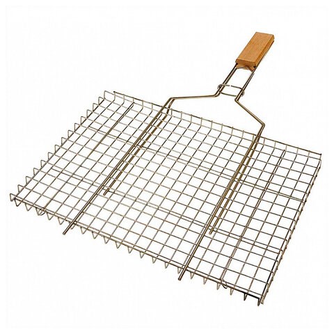 Решетка-гриль универсальная с рабочей поверхностью 350х260 мм — отличное решение для приготовления мяса, грибов, овощей и иных блюд на открытом огне. Рабочая поверхность компактна и удобна, при этом обеспечивает достаточное пространство для приготовления мяса, рыбы или овощей. Прутики из прочной стали выдерживают высокие температуры и обеспечивают долгий срок службы. Никелированное покрытие защищает от коррозии, устойчиво к огню и безопасно для здоровья. Конструкция плотно закрывается и надёжно удерживает продукты при готовке. Деревянная рукоятка не нагревается, удобно ложится в руку и защищает от ожогов.