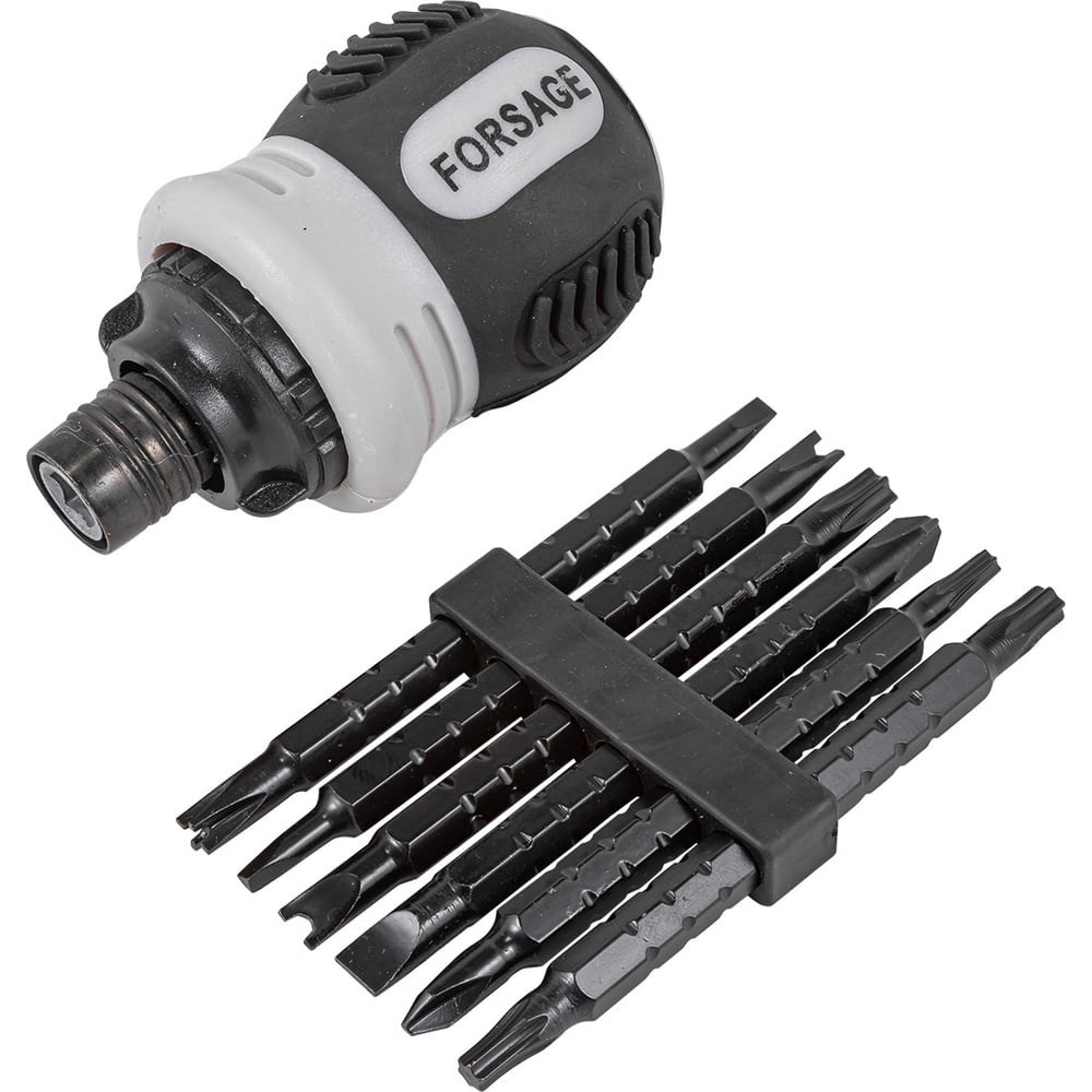 Отвертка реверс-телескоп с магнитным наконечником Cr-V (24/12 мм) от бренда Forsage — это универсальный и надежный инструмент для работы с резьбовыми соединениями!Основные характеристики:Материал: Стержень выполнен из высококачественной хромованадиевой стали (Cr-V), обеспечивающей прочность и долговечность.Телескопическая конструкция: Позволяет регулировать длину инструмента для удобства работы в труднодоступных местах.Реверсивный механизм: Упрощает смену направления вращения, что значительно ускоряет процесс работы.Противоскользящая рукоятка: Мягкая поверхность обеспечивает надежный захват, предотвращая выскальзывание из рук.Разнообразие бит: В комплект входят различные битами (PH, SL, TW, SP/U, TA, PHZ), что позволяет работать с разными типами крепежных элементов.Регулировка длины бит: Насечки на битах позволяют легко настраивать инструмент под конкретные задачи.Применение:Эта отвертка идеально подходит как для профессионалов, так и для домашних мастеров, обеспечивая удобство и эффективность при выполнении монтажных и ремонтных работ.С отверткой Forsage вы сможете легко справляться с любыми задачами!