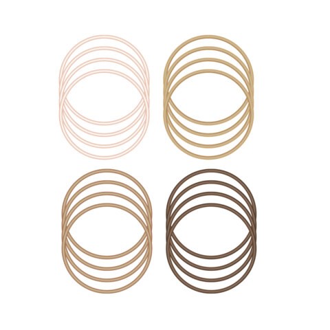 16 резинок в базовых оттенках (черный, коричневый, бежевый) — must-have для любого гардероба. Ультратонкий дизайн (0,15?14 см) делает их невидимыми в волосах, а прочный материал предотвращает соскальзывание.