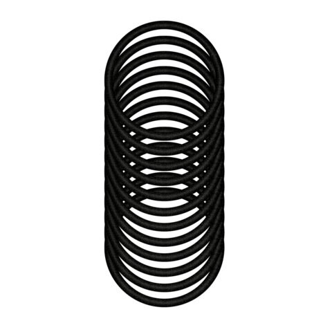 Этот набор из 12 резинок для волос изготовлен из высококачественного полиэстера. Классический черный цвет идеально подходит как для официального, так и для повседневного стиля. Размер 0,4 х 14 см позволяет удобно использовать резинки для создания причесок на волосах любой длины. Они обеспечивают надежную фиксацию, даже для густых волос. Каждая резинка закреплена на карточке с европодвесом для удобства хранения и использования.