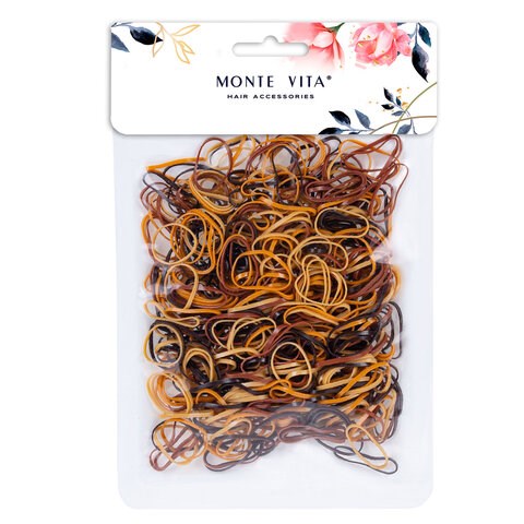Резинки для волос НАБОР 500 шт., силиконовые, маленькие, коричневый, прозрачный, MONTE VITA (МОНТЕ ВИТА), 457067