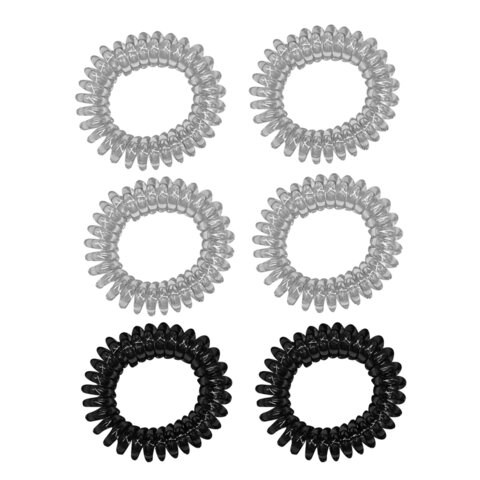 6 разноцветных резинок-пружинок для тонких волос и детских укладок. Компактный диаметр (3,5 см) делает их незаметными в прическе. Универсальные оттенки легко комбинируются с аксессуарами, а гибкая структура бережно фиксирует волосы без заломов.