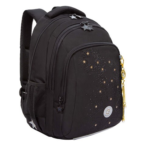 Рюкзак GRIZZLY школьный, анатомическая спинка, 3 отделения, для девочек, "GOLDEN&BLACK", 40х27х20 см, RG-561-2/1