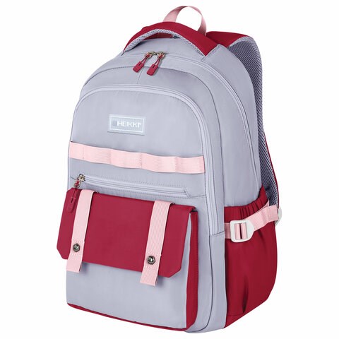 Рюкзак HEIKKI GOODLY (ХЕЙКИ) универсальный, 2 отделения, отделение для ноутбука, серый/красный, 46x33x18 см, 273869