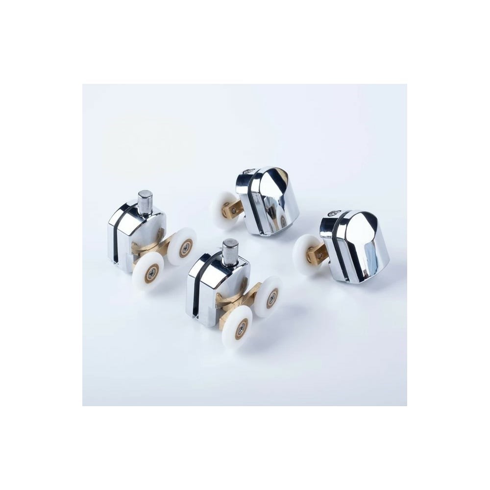 Ролики IDDIS 2 верхних, 2 нижних, двойные, D=23 мм, хром, стекло 4 мм 966D23C4DZ подходят для стекол толщиной 4 мм. Комплект из 4 штук (2 верхних и 2 нижних ролика). Каждый ролик имеет два колесика диаметром 23 мм, снабженные подшипниками для более мягкого хода. Это обеспечивает плавное и тихое движение дверок при открытии и закрытии – для комфортного ежедневного использования. Легко устанавливаются - верхние при помощи отвертки, нижние фиксируются кнопкой. Изготовлены из прочного ABS-пластика и надежной латуни, что гарантирует долгий срок службы и защиту от коррозии, влажности и скачков температур.