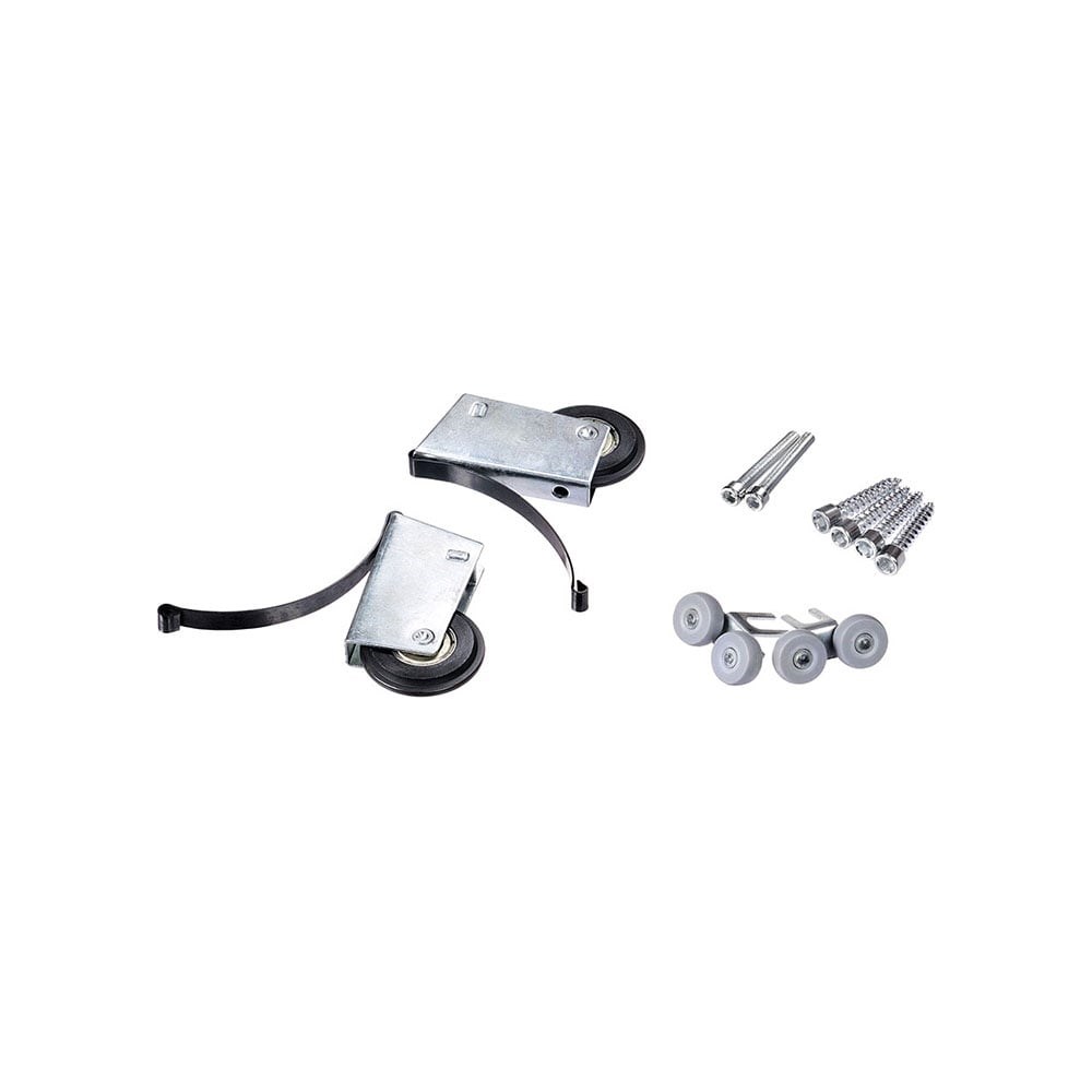 Ролики в комплекте Mebax Симметрия 1-ый класс с саморезом 6мм под трек 37,5мм обеспечивают плавное перемещение дверей шкафа-купе. Комплект предназначен для установки на дверь с закрытой ручкой (Н-образной формы).Грузоподъёмность 35 кг;Базовые ролики для лёгких дверей без вставок;Верхний ролик на втулке.